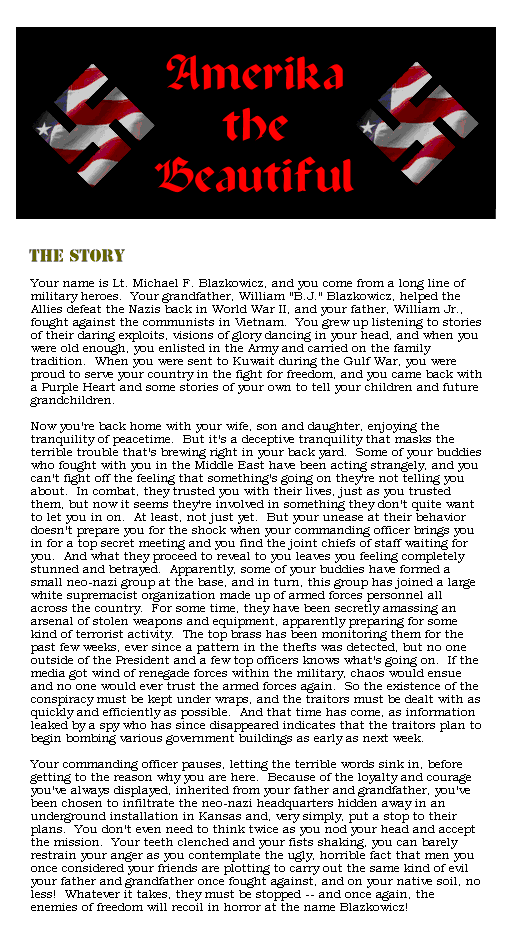 Amerika the Beautiful is a scenario for Wolfenstein 3D, compatible with both 2nd and 3rd Encounters.
