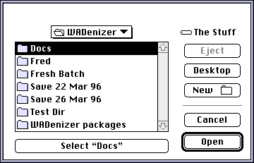 The WADenizer is a utility for converting Doom II WAD add-on files so they work better with MacDoom. Specifically, it expands sprites like the PC program DeUSF, fixes the demos so Doom will not crash, and allows map conversion from Doom to Doom II. It can also extract parts of the files, allowing you separate sound, map, and graphic portions. Version 2.0 of the WADenizer adds support for more WADs, such as the Army of Darkness conversion, and allows the copying of miscellaneous other WAD information previous versions ignored.