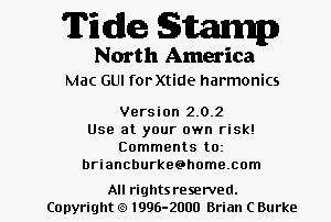 Tide Stamp is a tide and current predictor. Tide Stamp North America 2.0.2 calculates tides or currents for 900 locations in or near North America for the year 2001. Tide Stamp will run on any Mac with System 7 or later.