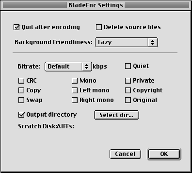 BladeEnc is a free MP3 encoder. It converts AIFF or WAV files to MP3. It features multiple options including many bitrates and drag'n'drop encoding. BladeEnc is licensed under the GNU Lesser General Public License.