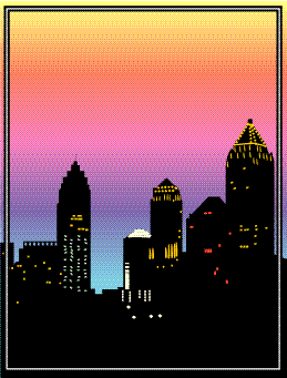 vector clip art, created in adobe ilustrator v. 8, saved as eps. this image is a skyline of atlanta, nighttime, stylized. one of many that i will send here. use is unlimited, artist retains copyright. this file may be included on any cd rom.