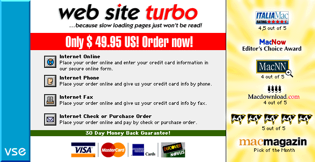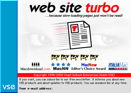This is VSE Web Site Turbo 3.1, a new version of the award-winning web page optimization tool.