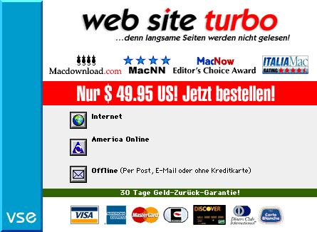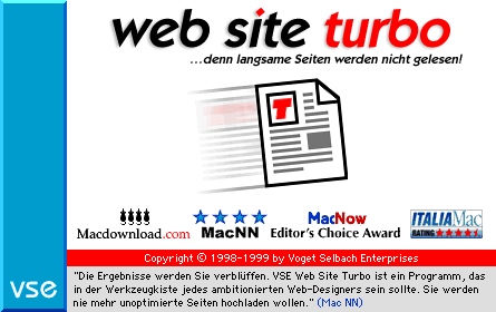 VSE Web Site Turbo is a tool that optimizes web pages and images so that they become much smaller and load much more quickly into web browsers.