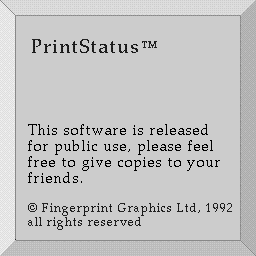 PrintStatus Adds an item to the Utilities menu, appropriately enough called PrintStatus. Selecting it will turn a check mark on or off. If the check mark is turned on the the status box will be displayed when printing.